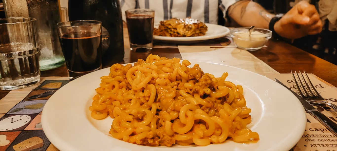 This is what the world knows as Bolognese but here it's called ragù. Forget about spaghetti noodles, too, here the wider and flatter tagliatelle noodles rule. Every restaurant has its own recipe but, in general, ragù uses a mix of ground beef and pork, some veggies (like carrots and onions), and sometimes tomato paste, along with plenty of spices.