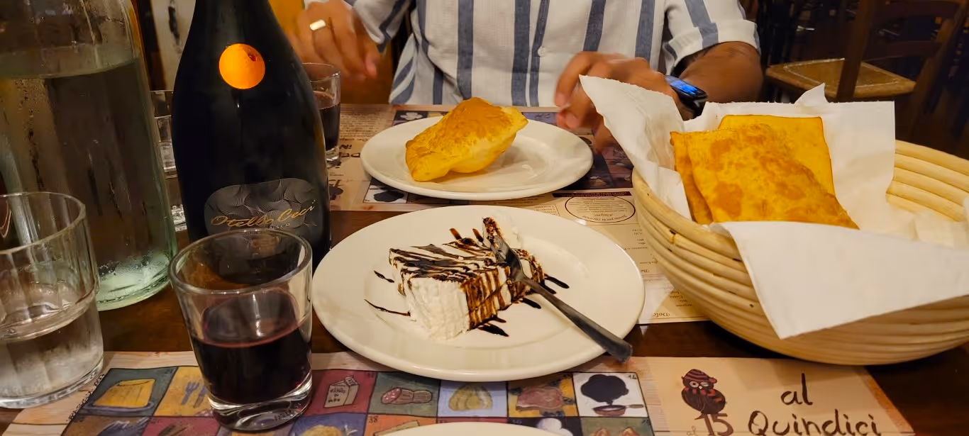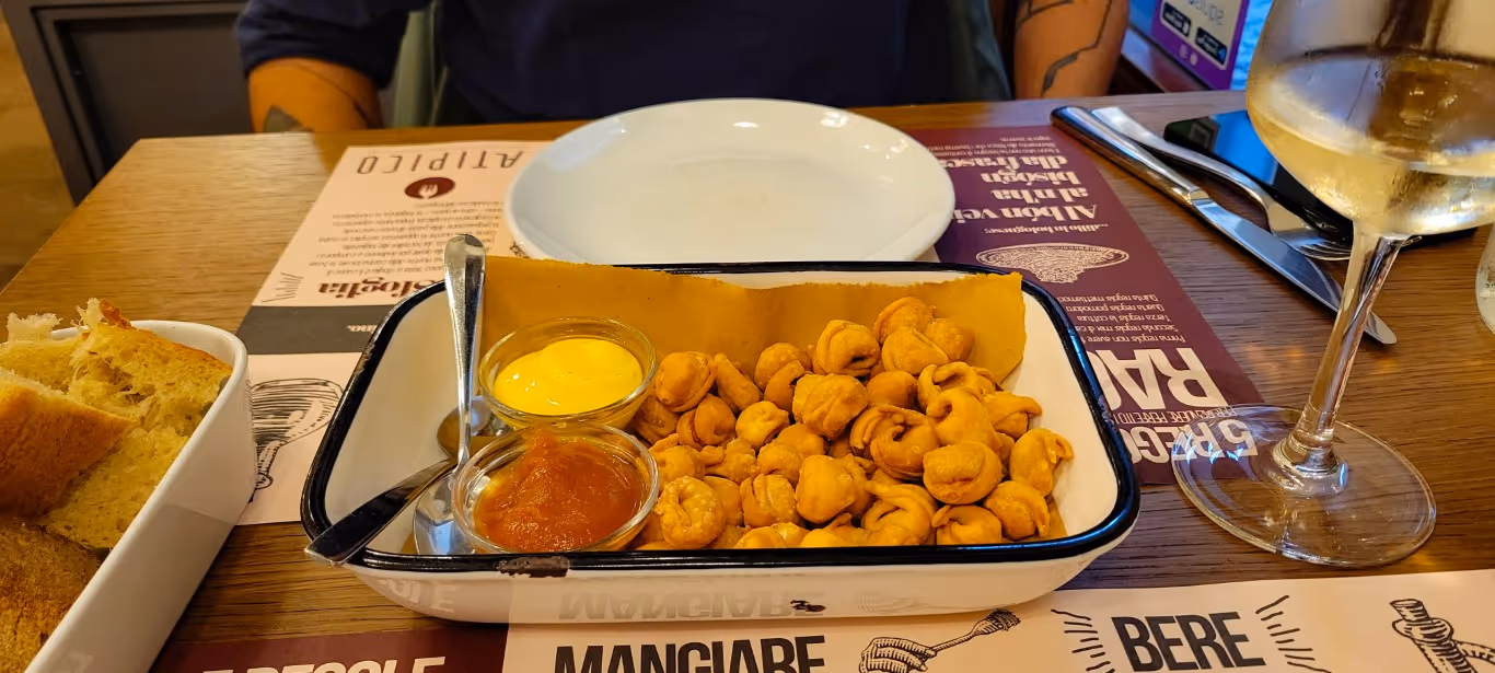 Zerocinquantino: This is a great place to go for traditional meats and cheeses in Bologna. I'm looking at you mortadella and squacquerone. The icing on top of the cake is their homemade bread. Their lambrusco with peach cocktail is super refreshing when it's warm out.