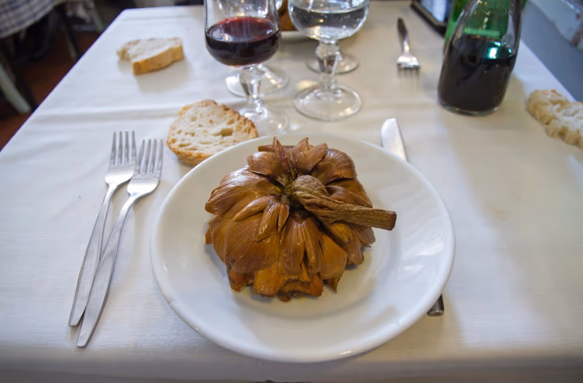 Romans love their artichokes. So much so that there are two ways you'll see them on the menu: carciofi alla Romana, or Roman-style, and carciofi alla Giudia, or Jewish-style.
