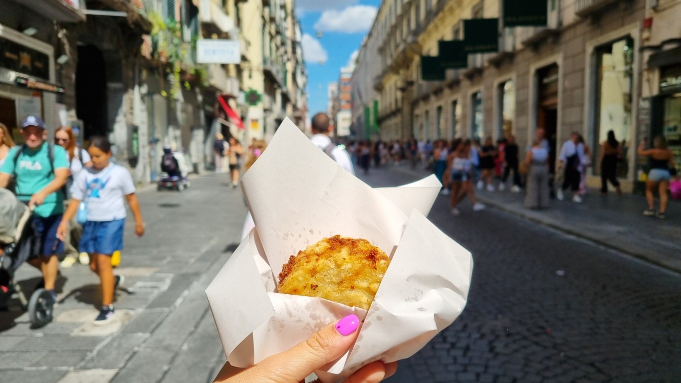 A frittatina on Via Toledo is my #1 pick for street food in Naples (and trust me, the competition is stiff)