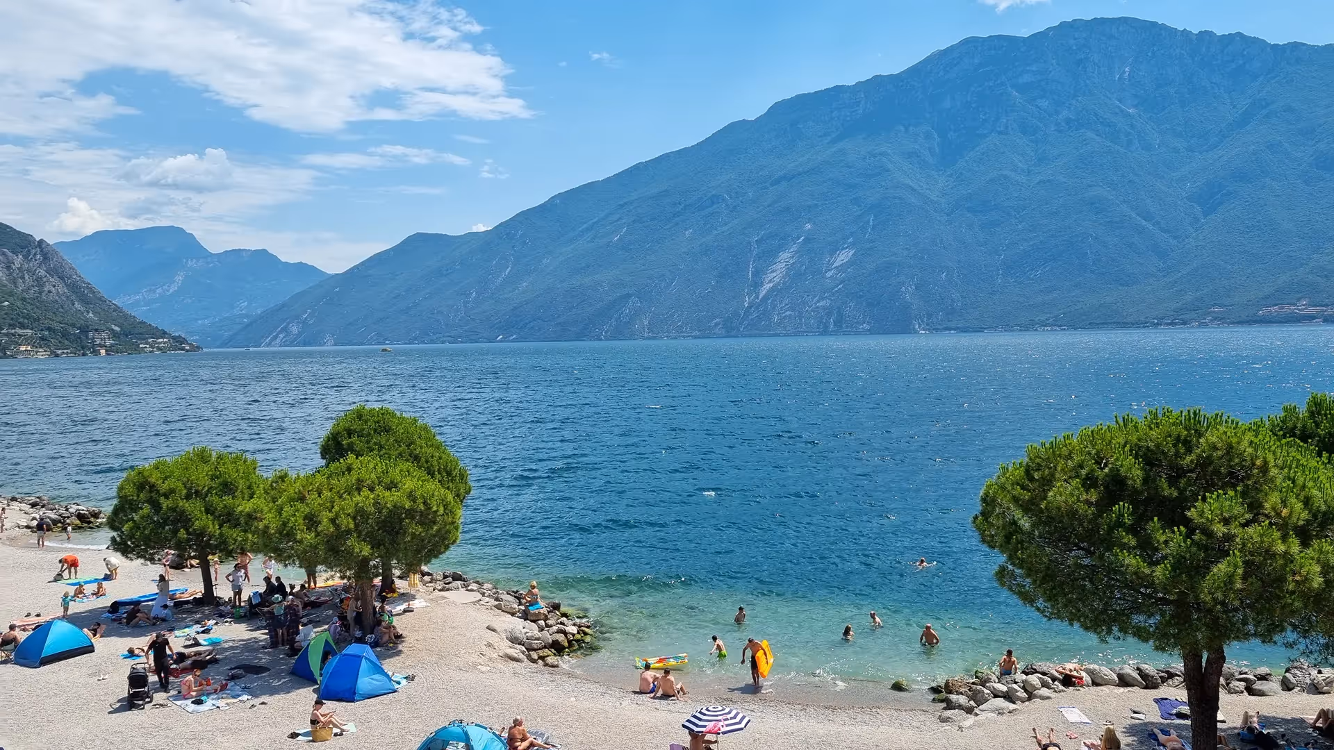 The beach in the summer at Limone sul Garda